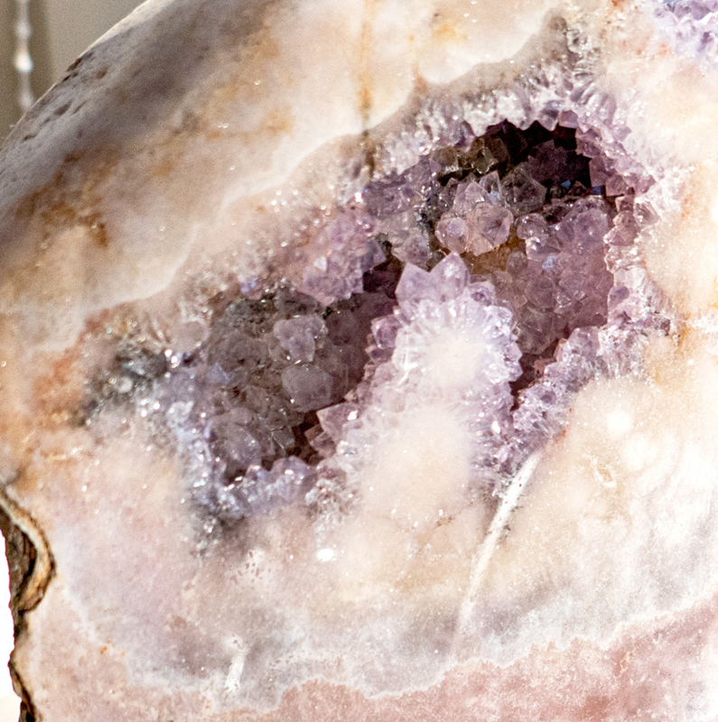 Uniek als decoratie en deze 1Akwaliteit en fraaie grootte bewerkt een positieve beinvloeding in een leef - en of slaapruimte. Met WOW factor, Roze Amethist, geode schijf op standaard, mooie kwaliteit, gave kristallen. Perfect afgewerkt. Zeer goede prijs-kwaliteitsverhouding.