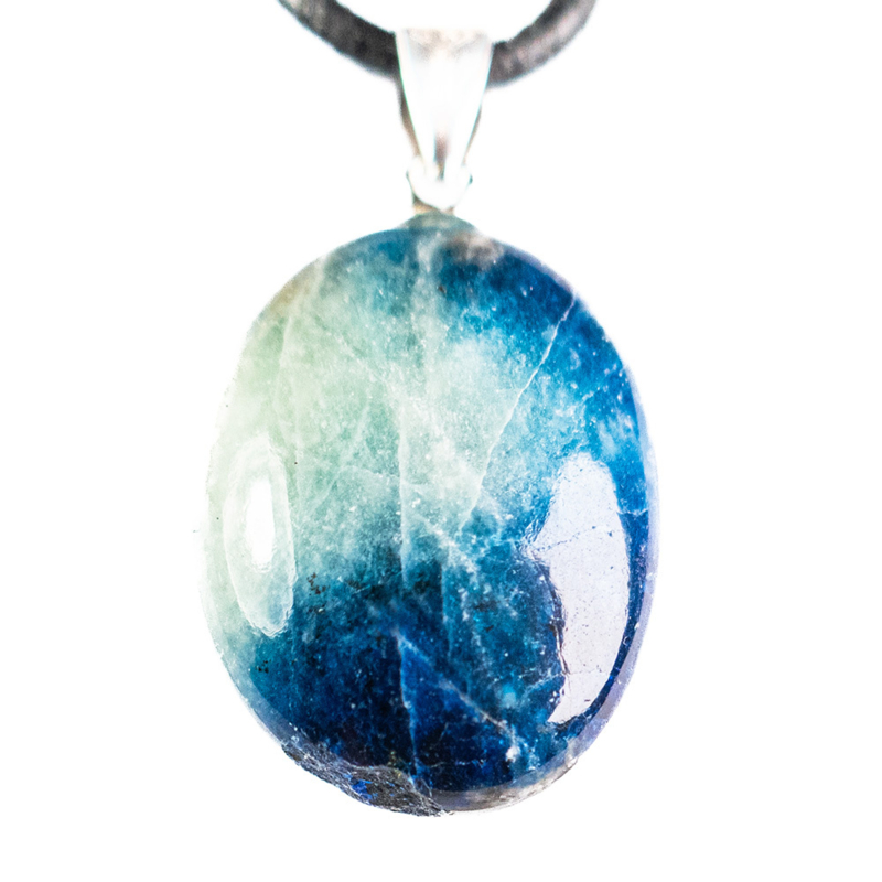 Lengte van deze prachtige donkerblauwe met wat lichtere kwartsdelen Afghaniet hanger (met enig pyriet) lengte (incl. zilveren oog, met zowel 925 én producent keurmerk, (vlg. zwitserse norm)) 3,2 cm, breed 1,7 cm, geleverd met zwarte leren veter.