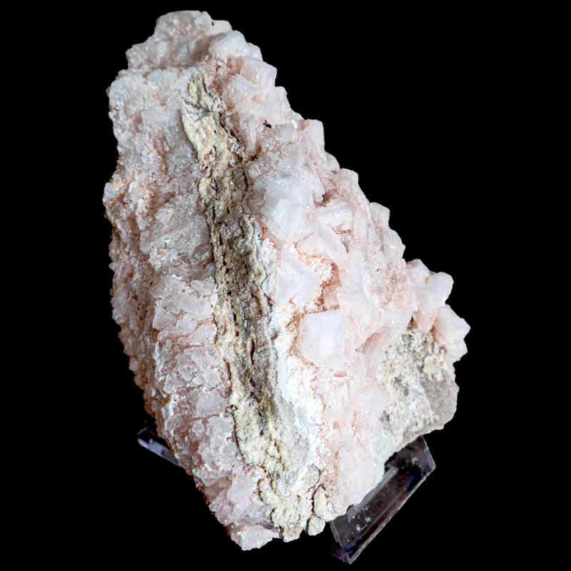 Fraai groot gelaagd stuk Haliet kristalcluster uit de USA. Lengte 17 cm, breed 12,5 cm, dikte 6,7 cm, gewicht ca 0,88 kilo. Mooi goed gevormde halietkristallen aan de voorzijde, de achterzijde bestaat uit een zeer mooie dieproze laag haliet. Al met al een topstuk.