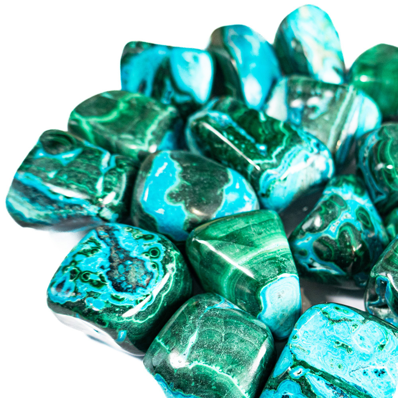 OverzichtPrachtige Chrysocoll-Malachiet trommelstenen formaat (XL).