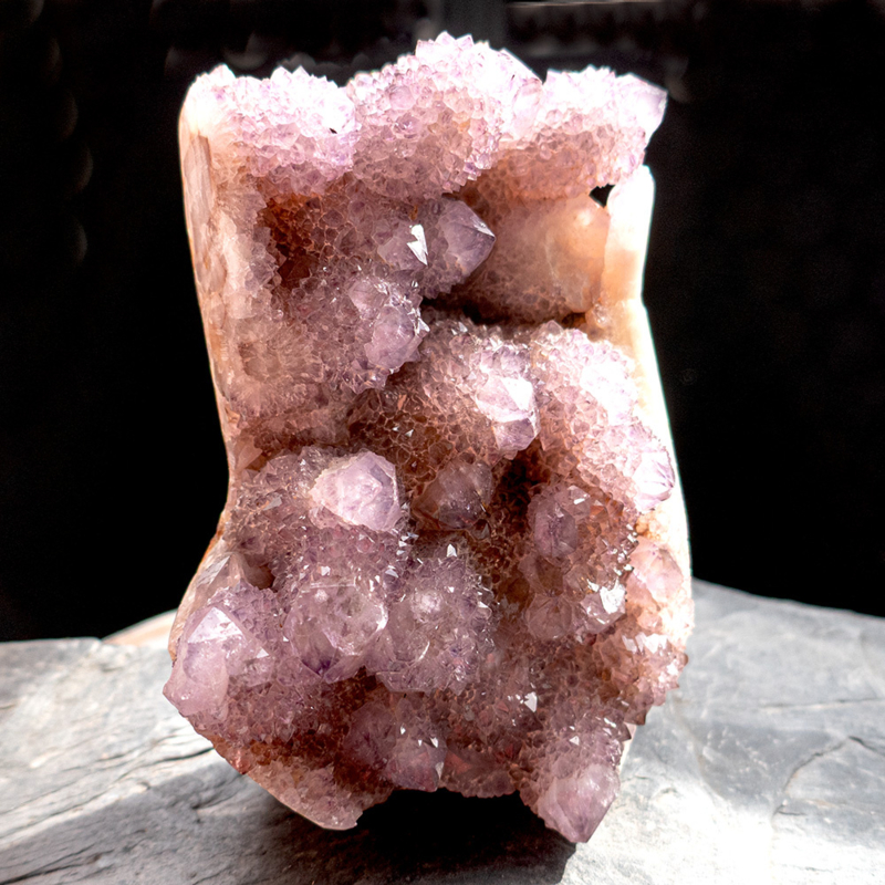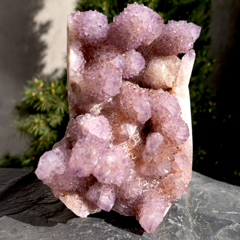 Cluster Spirit ametrienpunten vele mooie kristallistaies, zeer fraai, hoogte 12 cm, breedte 8 cm, dikte ø 5 cm. Gewicht van 0,67 kilo. Zeldzaam en uniek stuk. Met standvlak voor een stabiele plaatsing