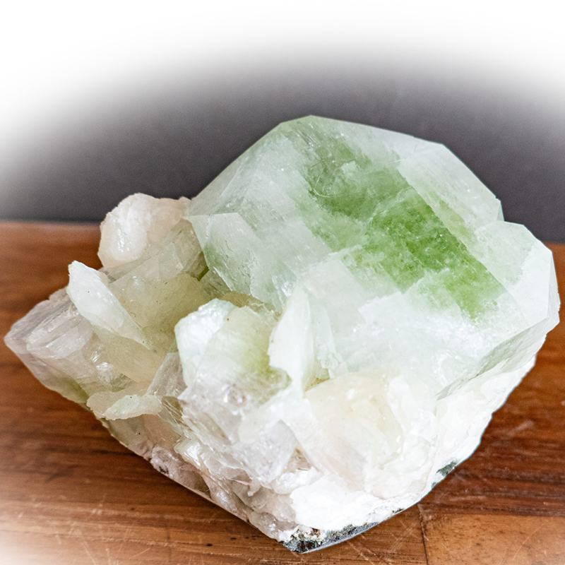 Massief groot Apofyliet kristal(4,7x5,8cm) met heerlijke groene kleurschakeringen, bijna uitsluitend Apofyliet kristal.