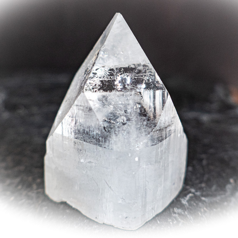 OverzichtUnieke Apofyliet gave en heldere kristalpunt, extra groot van 1A kwaliteit, met een hoogte van 3,8 cm, breed 2,5 cm, met een zeer mooie vlakverdeling, absolute uitgezochte top kwaliteit. Apofylieten behoren tot de mineralen die tot de zeoliet groep behoren, komen vaak gemeenschappelijk voor en veelvuldig in Poona (India) waar deze ook vandaan komen.