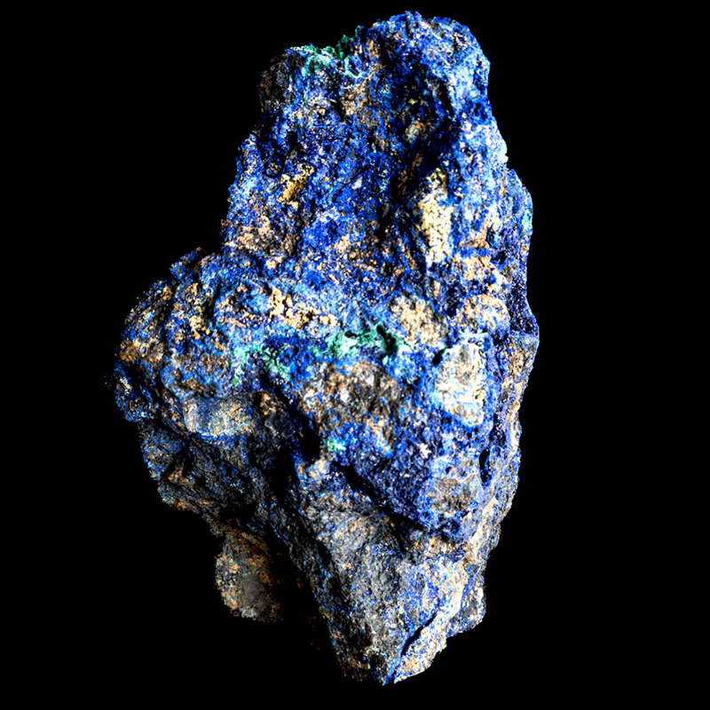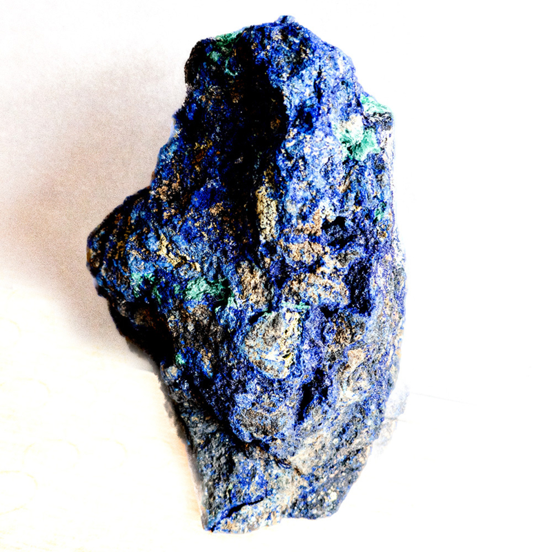 OverzichtPrachtige ruw stuk massieve Azuriet-malachiet, in wisselende verhoudingen, zeer weinig matrix (moedergesteente). Een fraai stuk grotendeels bestaand uit compacte donkerblauwe Azuriet met inbeddingen van kleine eilandjes van groene malachiet. Een uitgezocht en zeldzaam stuk. Goede prijs-kwaliteitsverhouding.